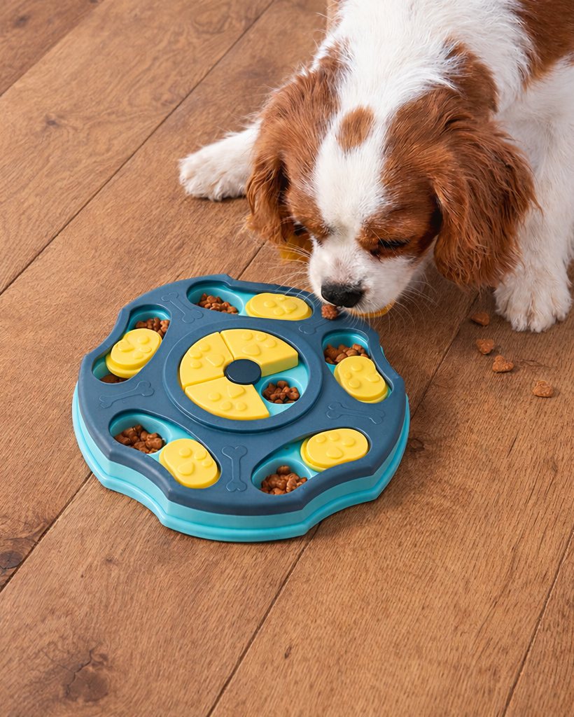 Fill compartments with dry food or treats. Let your dog explore, sniff, and solve. Increase difficulty over time by hiding food deeper in sections.